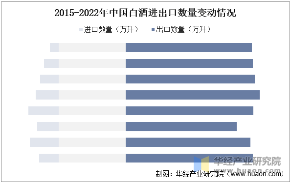 白酒进出口变更而言,国内白酒全体进出口较全体产量和需求较小,次要以出口为从,年均出口量正在1。6万千升摆布,进口白酒全体波动增加,疫情布景运输受阻同时居平易近消费志愿下降全体进口有所下降,数据显示,2022年我国白酒进出口量别离为252。43万升和1635。7万升,别离较2021年下降32。2%和增加2。1%。